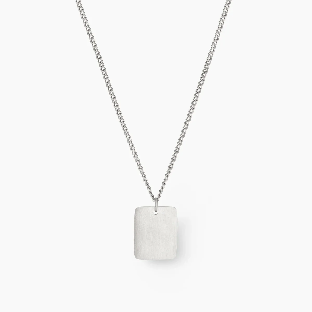 Halsband med personlig gravyr i rostfritt stål. Snygg och stilren design med ett fyrkantigt hängsmycke i en hamrad finish.