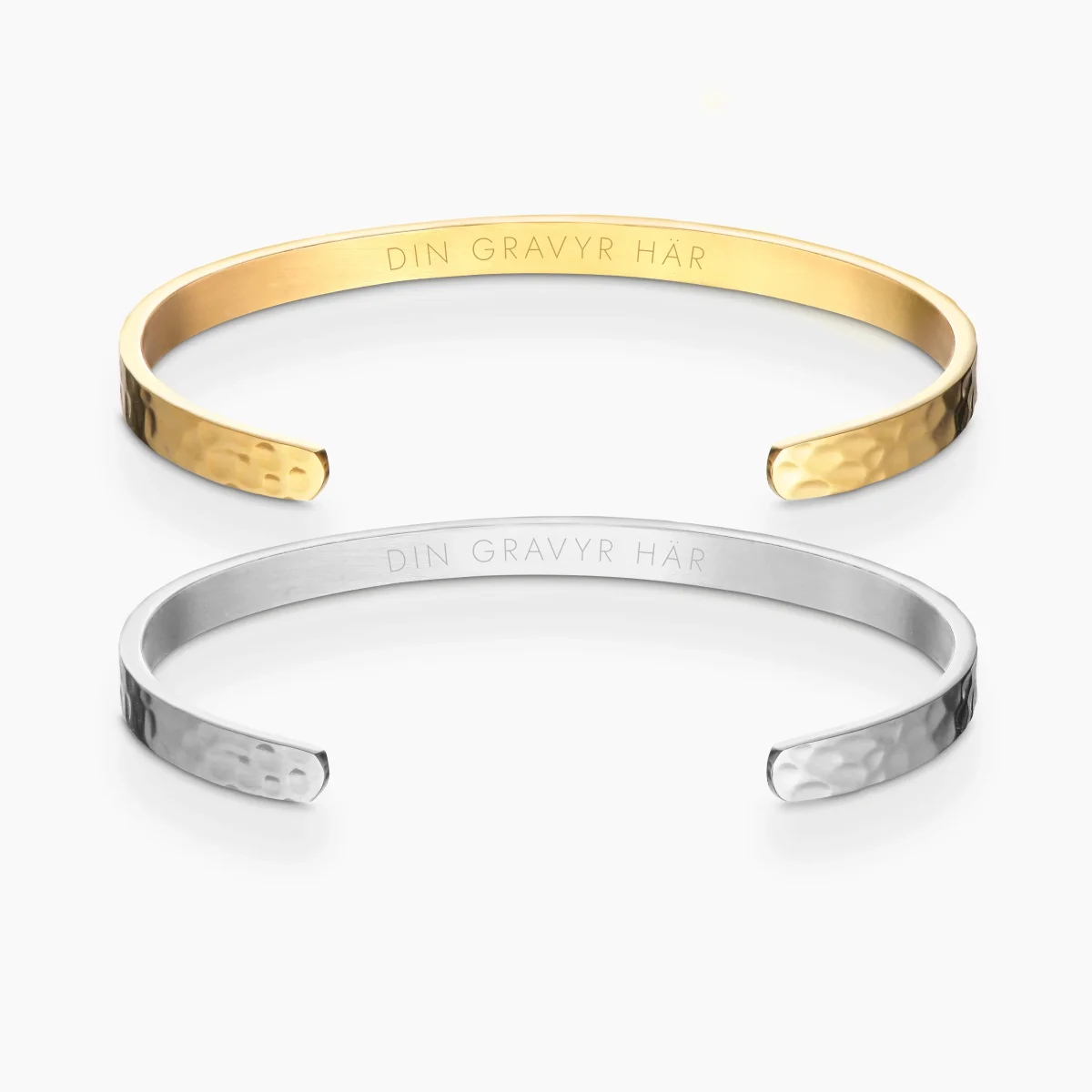 Två personliga hamrade armband med valfria graveringar. Överraska någon som du håller kär med detta armband i unik design med valfri gravering.