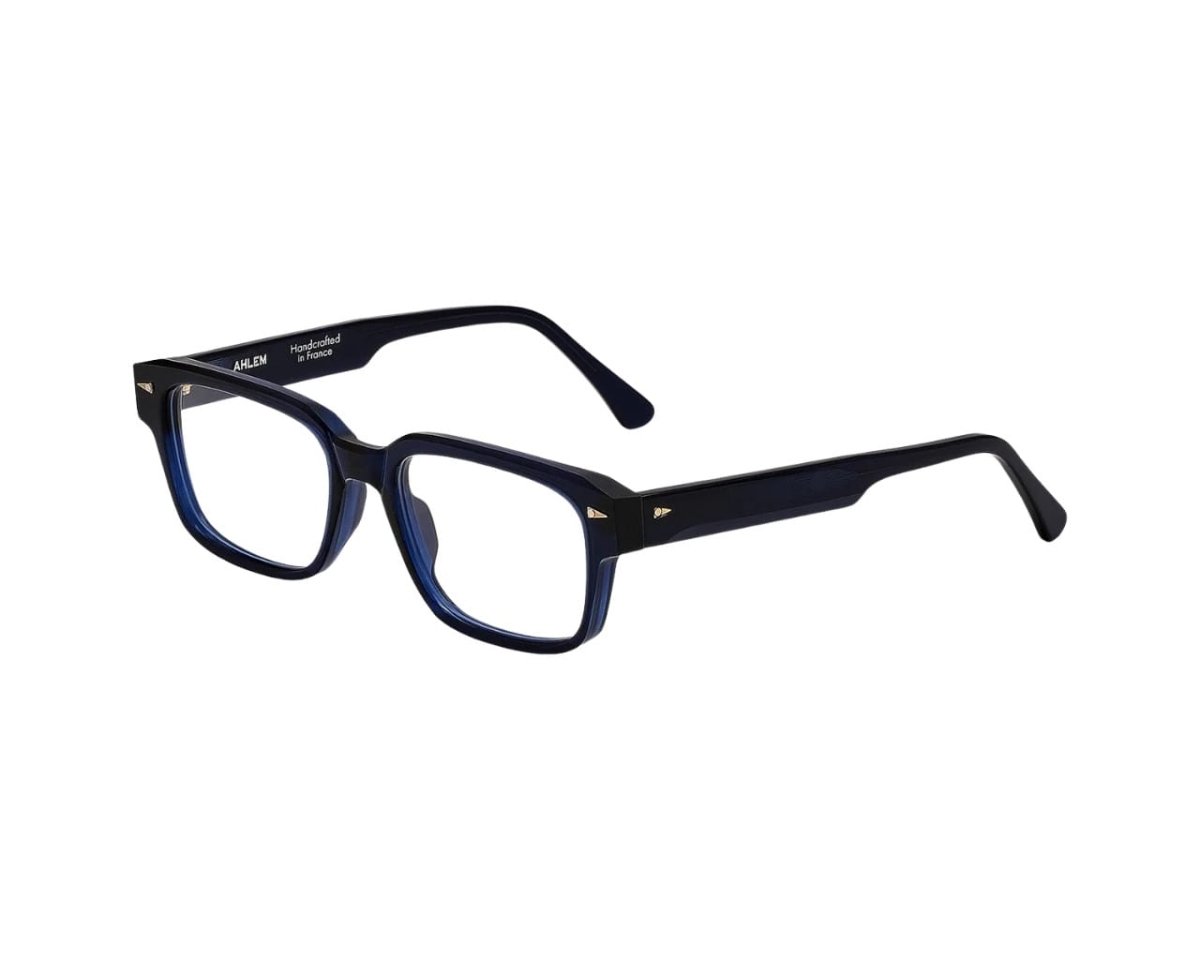 Ahlem Beaux är en handgjord unisexbåge med rektangulär form och tydlig struktur. Den djupa nyansen Bluelight framhäver linjerna i acetatet och ger ett modernt, självsäkert uttryck med fransk elegans.