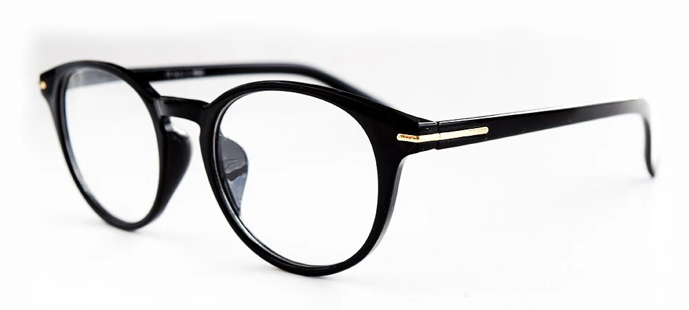Läsglasögon med svart rundad plastbåge med fina detaljer. Båge i optiskt plastmaterial. Dessa läsglasögon har en fin guldfärgad detalj på sidan av bågarna som även syns framifrån. . Alla våra glasögon levereras med putsduk och snyggt hårt fodral. Fri frakt.