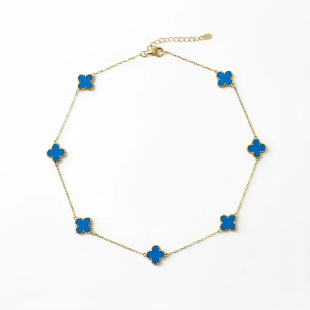 Azzurra fyrklöver halsband 7 klöver Blå