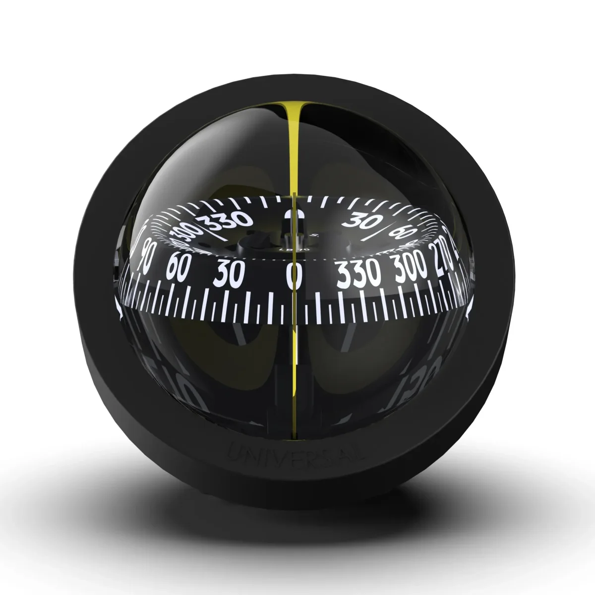 Den här båtkompassen kan installeras i valfri lutning eller position, till och med upp och ned. Den kan enkelt tas loss från fästet för att möjliggöra tillfällig pejling eller av säkerhetsskäl. Med huvudriktningsskala på den horisontella delen och direktläsning på den vertikala.