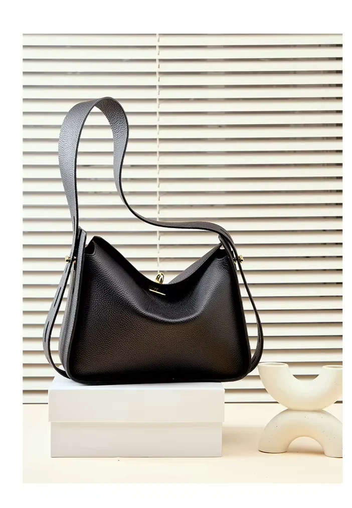 Denna moderna axelväska är utformad för den stilmedvetna och är tillverkad av högkvalitativt PU-läder. Med sin justerbara rem och unika stängningsdetalj erbjuder den både komfort och stil för den dagliga användningen.