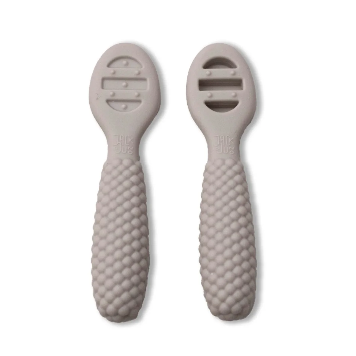 Bubble Pre-Spoons är utformade för att underlätta din bebis övergång till att äta själv. Steg 1 har en solid yta, perfekt för släta puréer. När ditt barn är redo för tjockare konsistenser, kan hon / han gå över till Steg 2 med öppna slitsar för att skopa upp mat såsom gröt. Båda skedarna har prickar på sidorna, vilket ger lindring för kliande tandkött. Den bubbliga designen gör det enkelt för små händer att greppa.