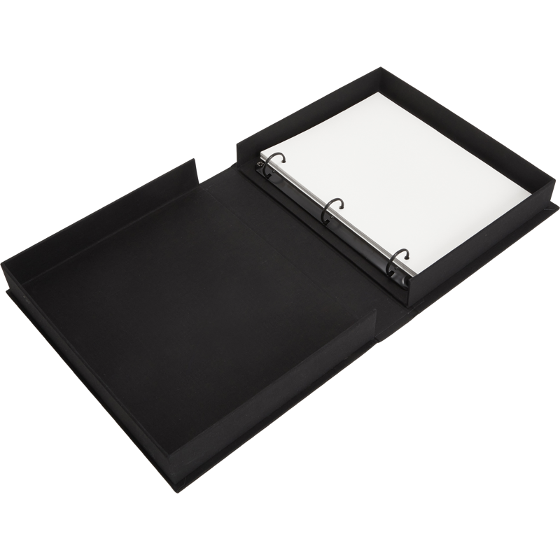 Insidan består av 30 sidor svart fotopapper av hög kvalitet, så att du enkelt kan fästa dina foton med klistermärken eller fotohörn, som köps separat. Det rymmer två 10×15 cm fotografier på varje sida, med utrymme för personliga anteckningar nedanför. Om du behöver fler sidor kan du beställa extra fotopapper (stort). Observera att albumet rymmer maximalt 40 sidor. Fotopapperets storlek är 28×21 cm.