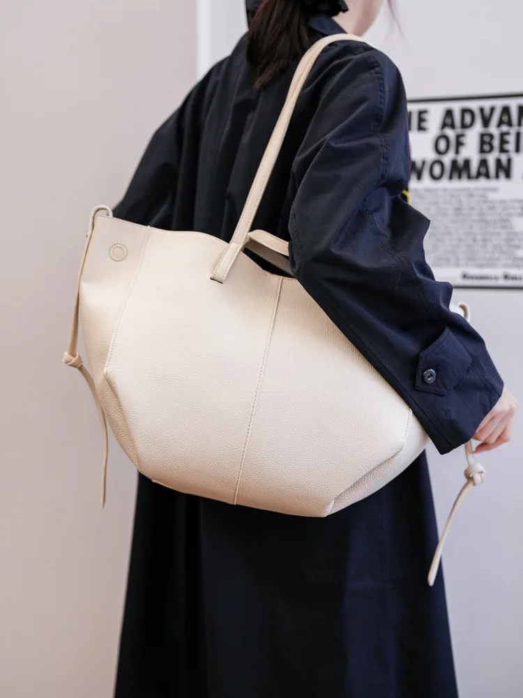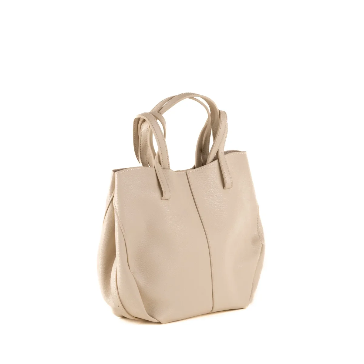 Handväska i läder med mångsidiga bäralternativ: utrustad med två korta handtag för att bäras som handväska samt två längre remmar för användning som axelväska. Inkluderar en praktisk avtagbar förvaringsplånbok med dragkedja, perfekt för att hålla småsaker organiserade och säkra. Väskan stängs enkelt och säkert med en magnetknapp, vilket gör den idealisk för den moderna, aktiva kvinnan.