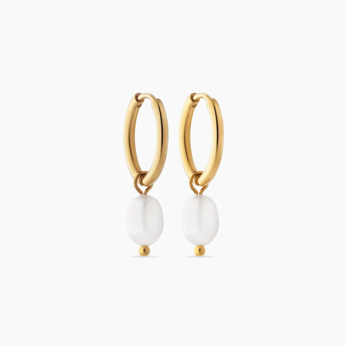 Våra creoler i 16 mm med pärla är skapade i rostfritt stål med en slitstark PVD-beläggning som säkerställer ett smycke du kan använda varje dag utan att behöva oroa dig för att färgen bleknar.