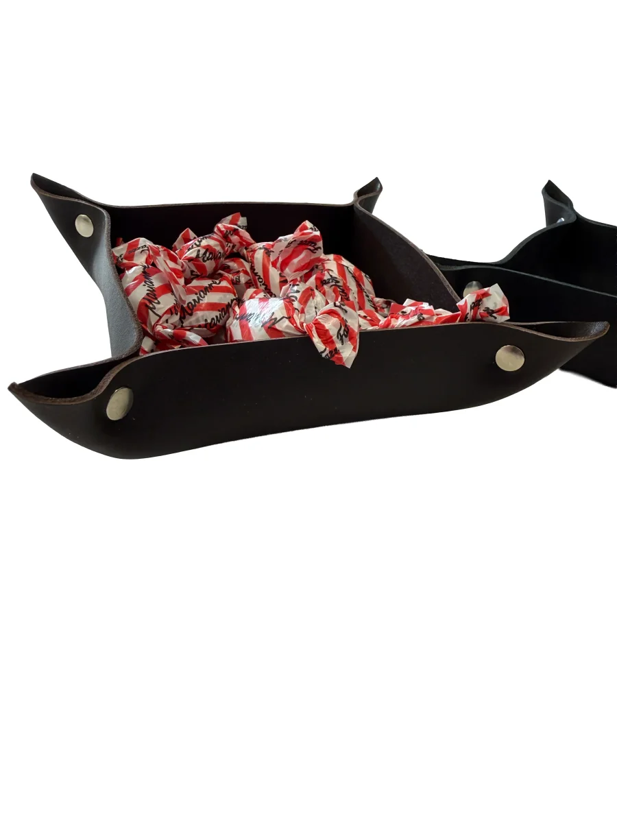 Dekorativ skål i läder – dekorskål – vackert läderfat