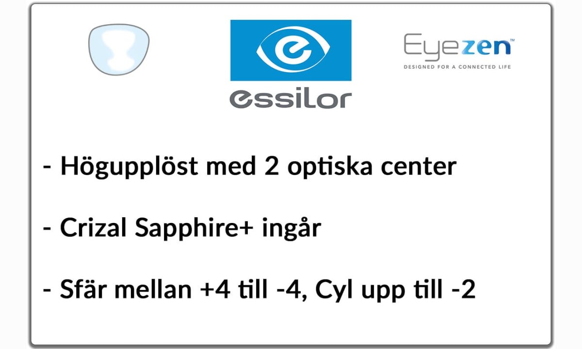 Vår livsstil har förändrats mycket under det senaste decenniet. Våra ögon måste fokusera mer intensivt och oftare för att anpassa sig till nära och varierande avstånd, vid byte mellan digitala enheter samt till allt mindre tecken som visas av skärmar. Eyezen™-glasen är anpassade för vårt nya synbehov.