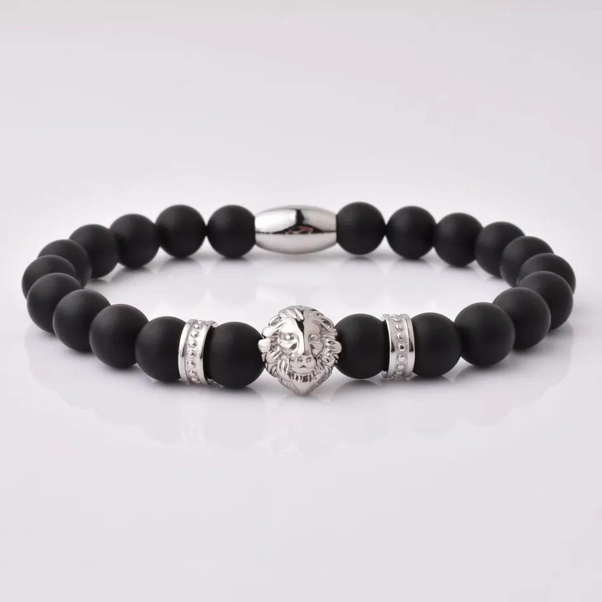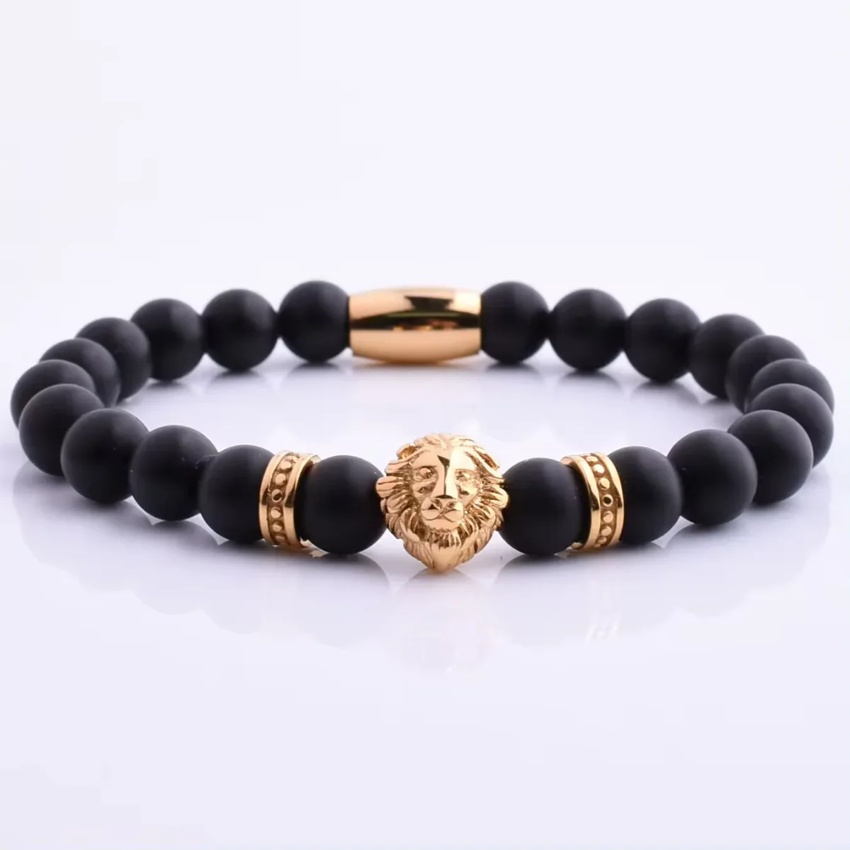 Uppnå en djärv och majestätisk stil med vårt herrstenarmband med elastiskt band och lejonhuvudsdetalj. Detta armband är en perfekt kombination av styrka och elegans, vilket gör det till ett utmärkt val för den moderna mannen med en passion för mode och individualitet. Tillverkat av högkvalitativa stenar och accentuerat med en imponerande lejonhuvudsdetalj, ger detta armband en kraftfull och unik touch till din look. Det elastiska bandet garanterar en bekväm passform och gör det enkelt att sätta på och ta av armbandet.