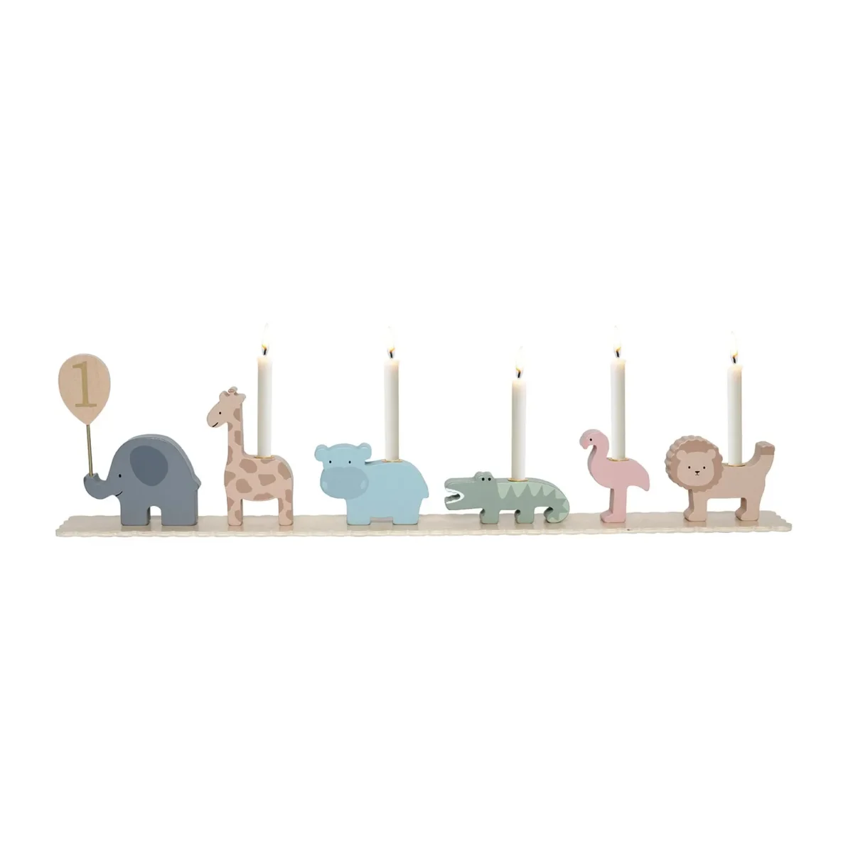 Fira födelsedagen med ett charmigt födelsedagståg fyllt med djur från savannen och djungeln! Med sina lekfulla detaljer och mjuka färger blir detta tåg en magisk detalj på födelsedagsbordet. Låt lejonet, giraffen och krokodilen följa med på firandet medan ljusen skapar en mysig och festlig stämning. Tillverkat i trä och designat med omsorg är detta tåget en tidlös dekoration som kan användas år efter år. En underbar presentidé och ett minnesvärt inslag i varje barns födelsedagsfirande!