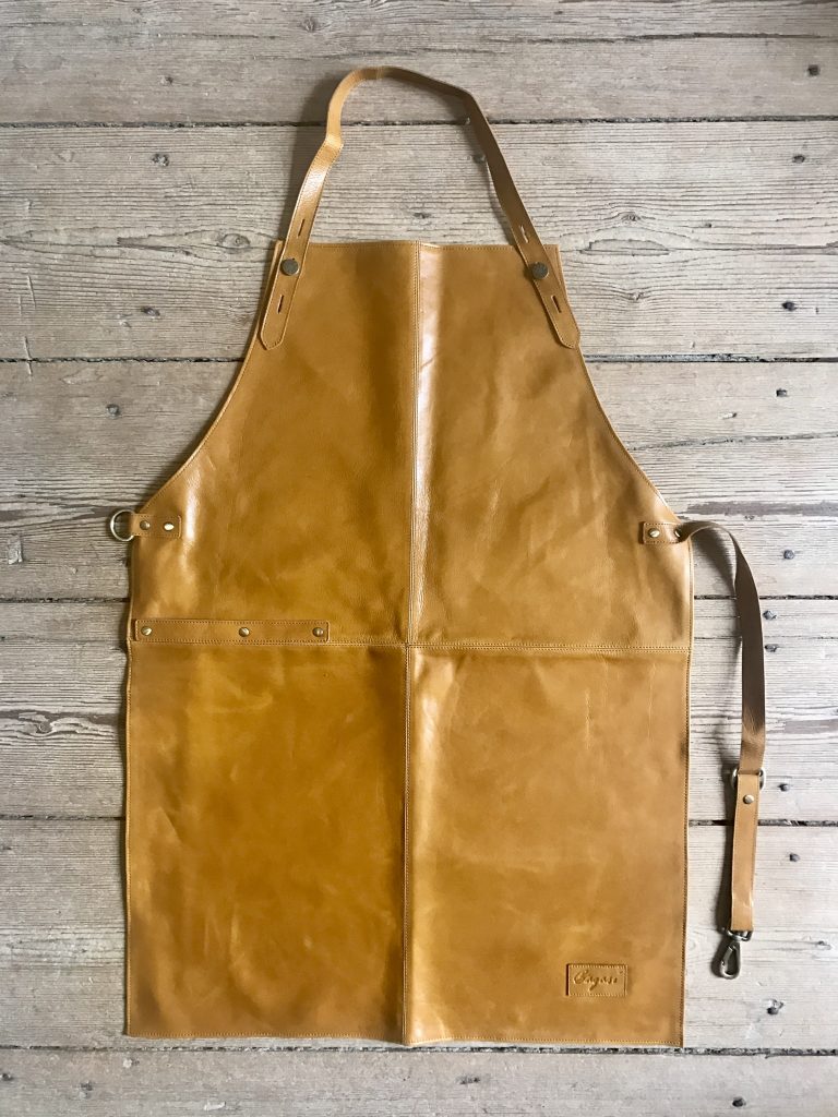 Vi har sytt upp vad vi tycker är det ultimata förklädet i läder. Det är mjukt och formbart och har en härlig lyster. Detta förkläde kommer att få en fin patina genom åren och formas av att användas.