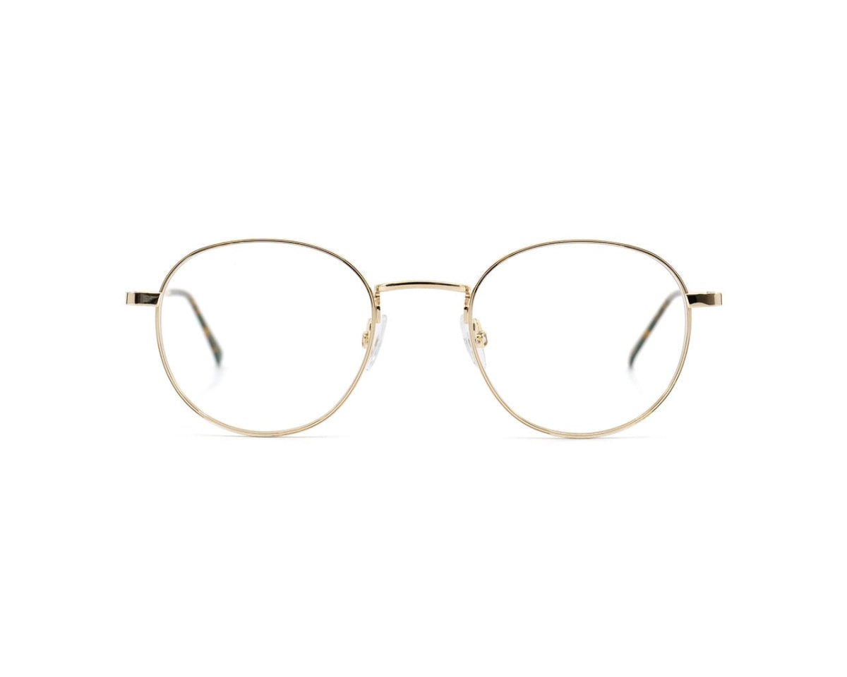 Götti Donn glasögon med rund titanram i guld. Unisexmodell med minimalistisk design och schweizisk precision.