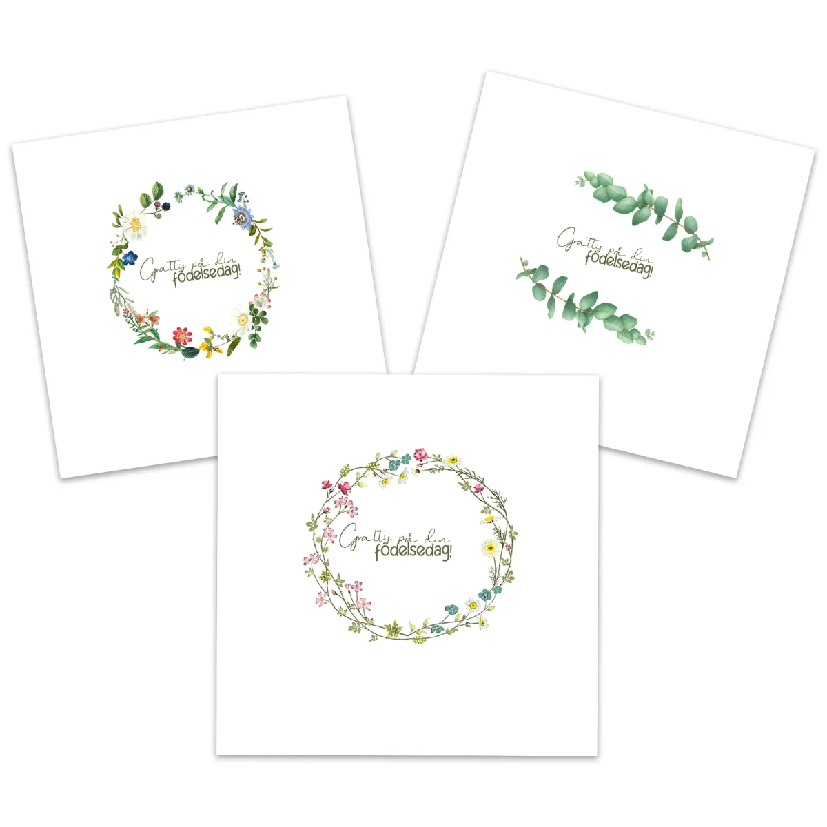 Våra egendesignade gratulationskort med blank insida, perfekt för personliga hälsningar!