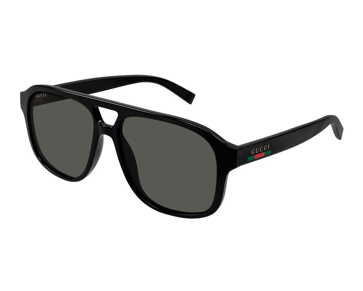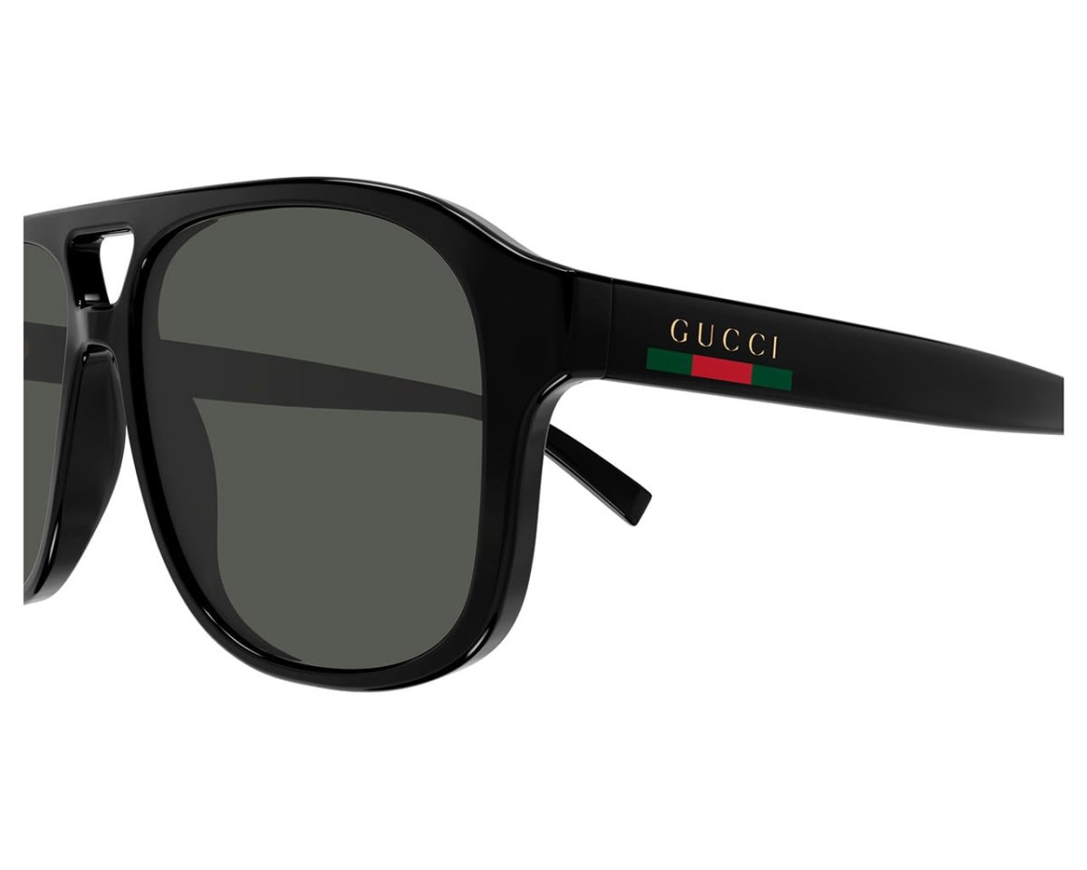 Gucci GG1856S pilot-solglasögon i svart acetat. En tidlös unisex-modell som kombinerar klassisk pilotform med modern Gucci-lyx.