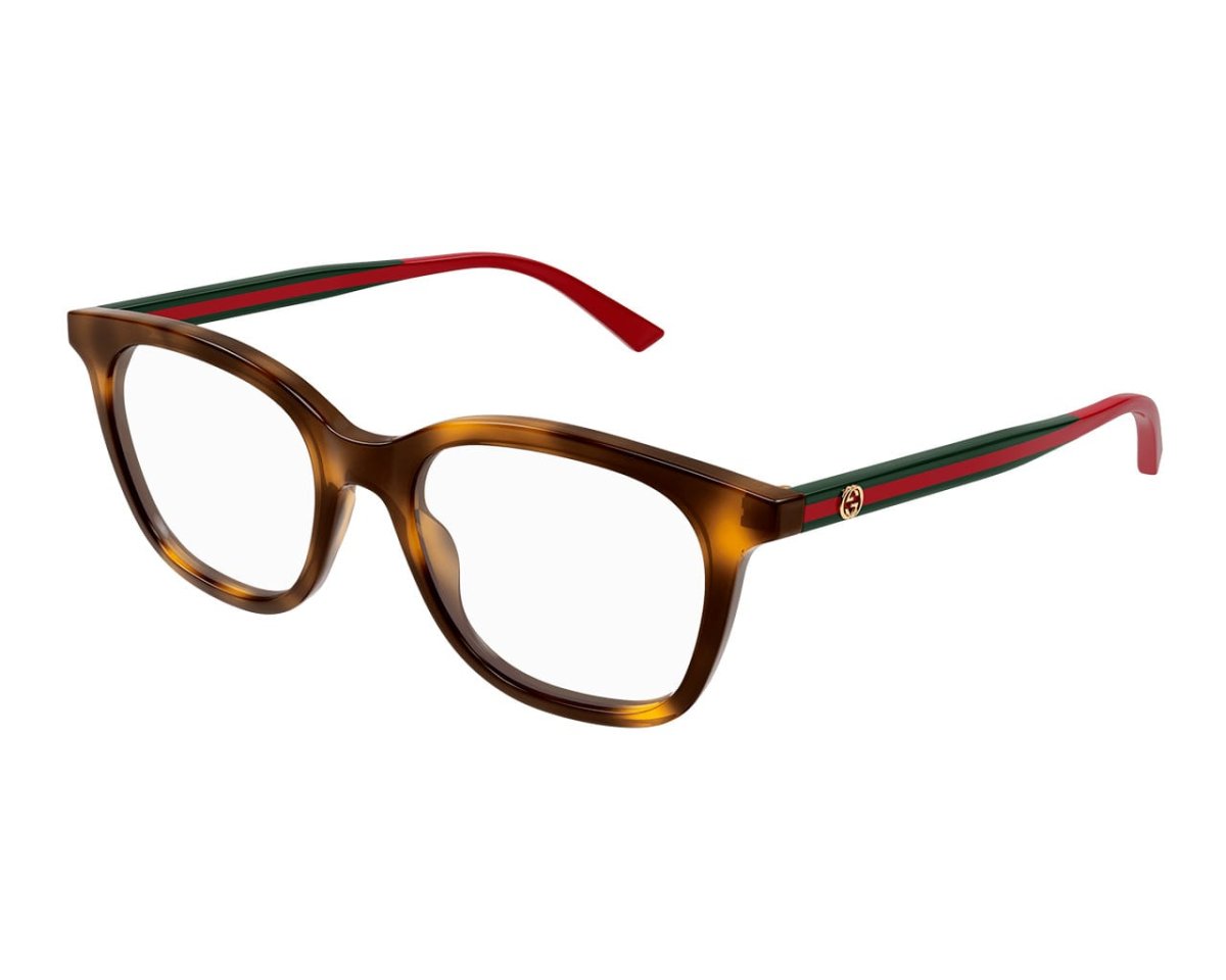Gucci GG1864O glasögon erbjuder en stilren fyrkantig design som kombinerar klassisk elegans med en modern touch. Den högkvalitativa acetatbågen ger både komfort och hållbarhet, medan de tunna skalmarna pryds av subtila Gucci-detaljer för en exklusiv känsla. Med sina trendiga färgalternativ i Havana med gröna eller blå inslag, är detta ett perfekt val för den som vill uttrycka sin personliga stil med en sofistikerad twist.