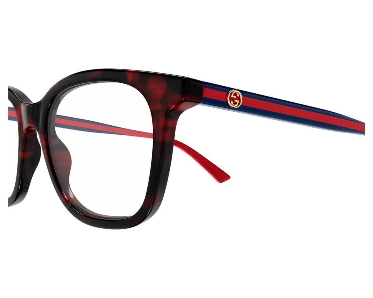 Gucci GG1864O glasögon erbjuder en elegant fyrkantig design i acetat med sofistikerade färgdetaljer – perfekt för en modern och stilmedveten look.