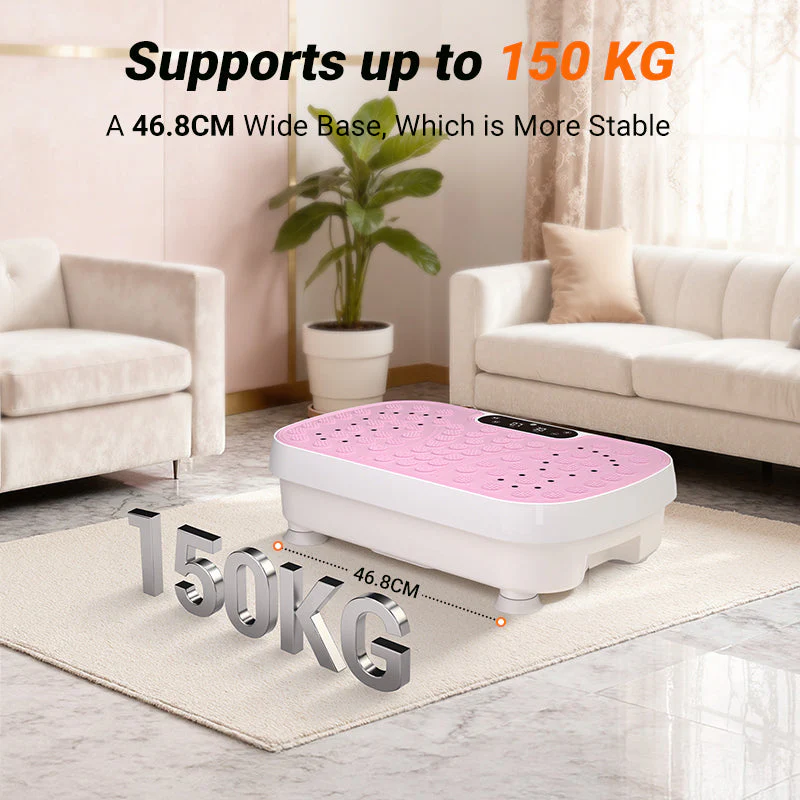 Plattan har 10-stegs justerbar intensitet, en kraftfull 150W-motor, högfrekvent vibrationssystem med upp till 50 vibrationer per sekund samt en användarvänlig LED-display med fjärrkontroll, så att du enkelt kan följa tid, hastighet och program.