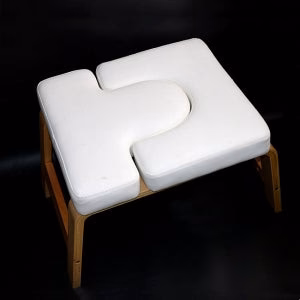Huvudståendestolen är tillverkad av massivt och stabilt björkträ och levereras med en mjuk skumpolstring (ca 5,5 cm tjock) i konstläder som både skyddar golvet och ger komfort under träningen.