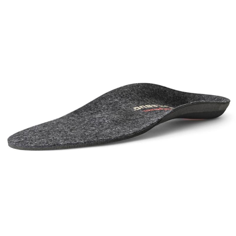 Dynamiskt valvstöd som optimerar fotens naturliga stötdämpning, fodrad med återvunnen filtad merinoull från Woolpower® .