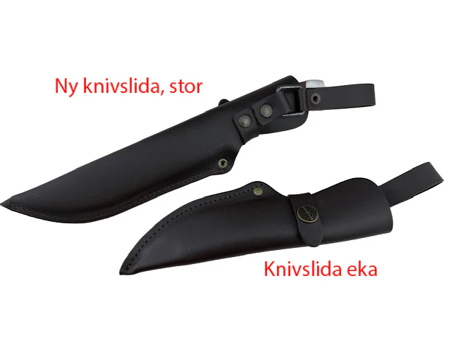 Dessutom passar slidan perfekt till vårt vildmarksbälte, vilket skapar en komplett och funktionell friluftsutrustning. Med den här slitstarka och eleganta lösningen kan du känna dig trygg i naturen, oavsett om du är på jakt eller bara njuter av friluftslivet. Se till att skydda din investering och njut av din kniv i många år framöver!