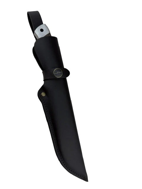 - För en perfekt passform, placera knäppet i vatten och låt lädret suga åt sig. Sätt sedan kniven i slidan och låt lädret torka.
