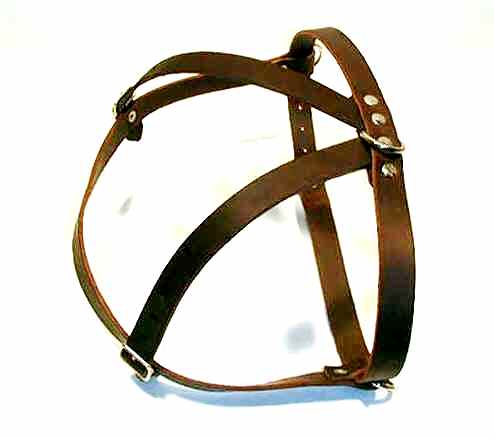 ALAC – Ofodrad lädersele modell S1 , tillverkat av svenskt naturgarvat giftfritt läder, mörkbrun. Passar bra som spårsele m m. Fästpunkter för koppel, spårlina m m på ryggen och på sidorna. Måtten som avses är max bröstmått dvs måttet runt magen direkt bakom frambenen.
