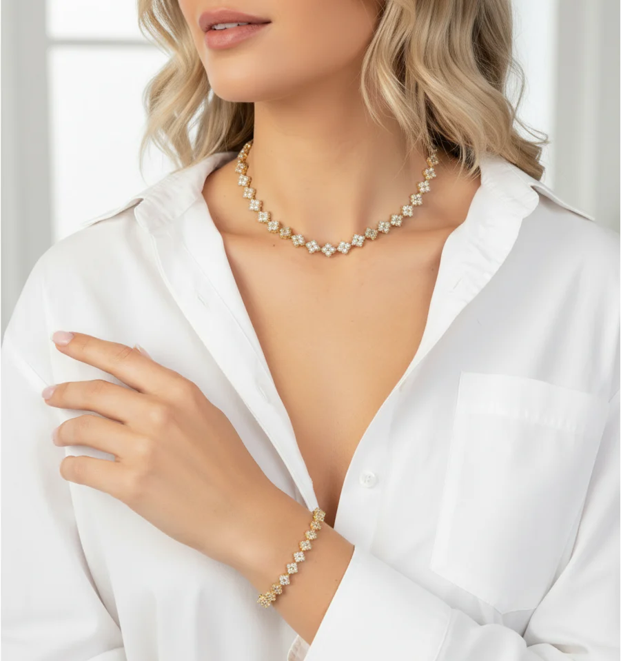 Letizia fyrklöver armband är det perfekta smycket för dig som älskar det lilla extra. Det är tillverkat med omsorg och precision, och varje armband innehåller hela 19 mini fyrklöver smyckade med fyra glittrande cz diamanter var. Du kan välja mellan två fantastiska utföranden: det eleganta silveralternativet och det lyxiga 18 karat guldpläterade alternativet. Oavsett vilket du väljer kommer Letizia armbandet att bli en vacker och sofistikerad tillägg till din smyckessamling. Skäm bort dig själv eller överraska någon speciell med detta exklusiva smycke som garanterat kommer att lysa upp varje tillfälle.