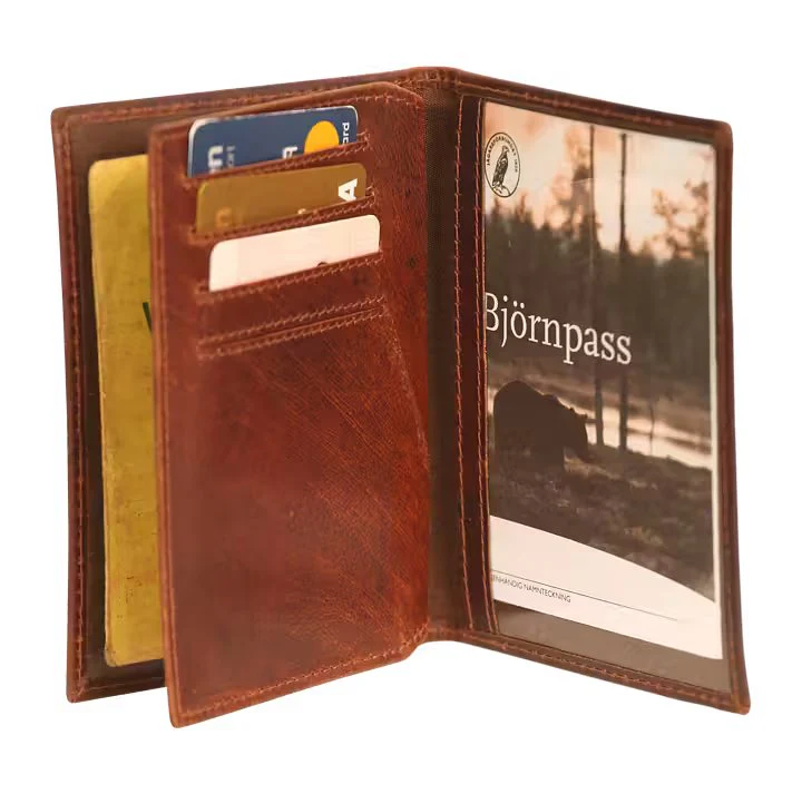 Perfekt förvaring: 4 fack för kontokort, 3 stora plastfickor för licenser och andra jakthandlingar.