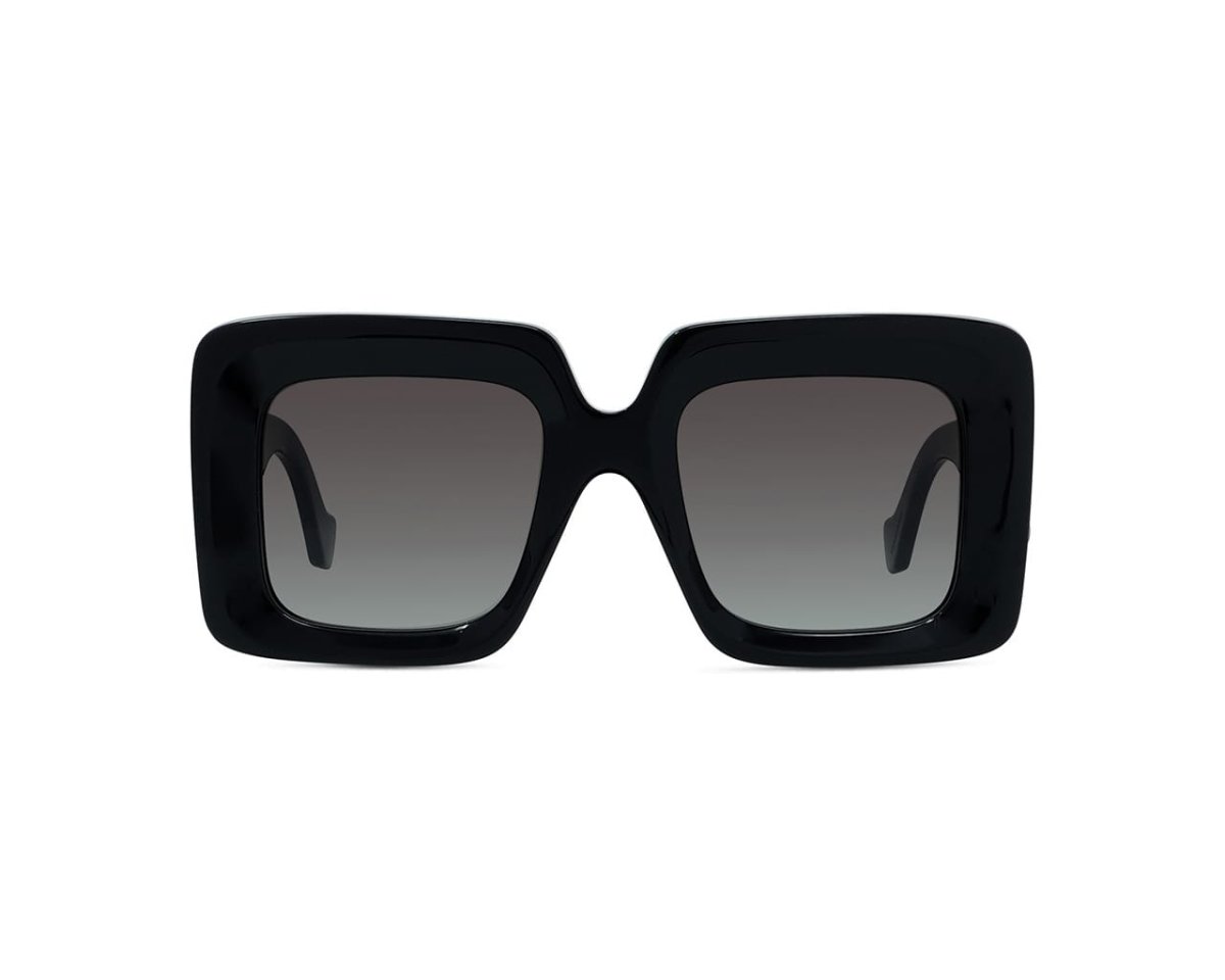 LOEWE LW40176U är solglasögon med en markerad fyrkantig form och en självsäker stil, där Shiny Black sticker ut med en snygg Black on Black-look.