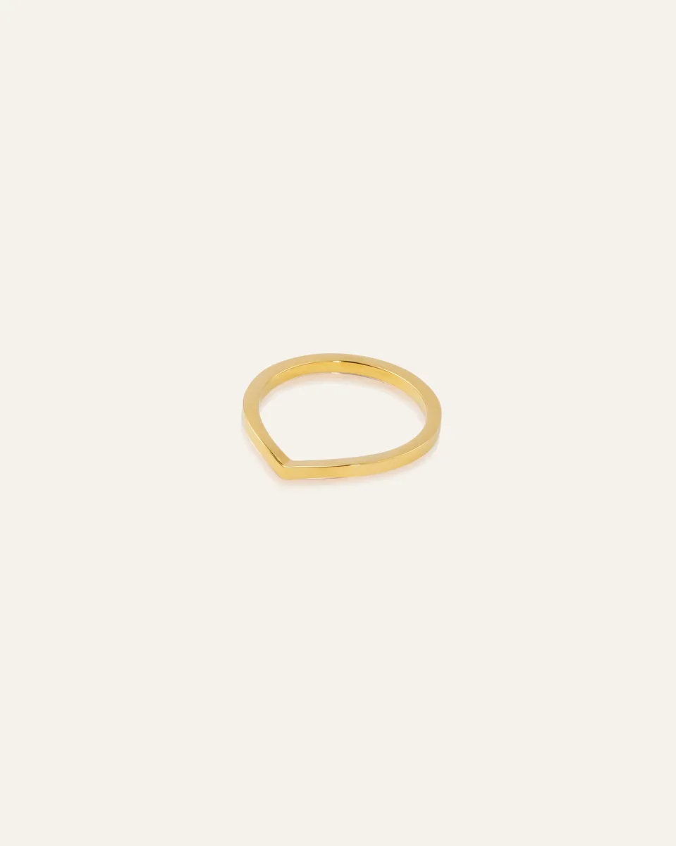 Enkelhet möter elegans i denna rostfria ring med en chic V-formad front. Ringen har en 18K guldplätering och PVD-skydd som säkerställer att den förblir lika tidlös som din stil. Oroa dig inte för att bada, duscha eller träna med vår rostfria ring i sin slitstarka och vattentåliga design.