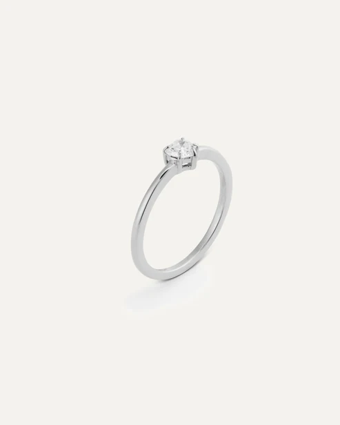 En tidlös ring i silverfärgat stål prydd med en vit cubic zirconia som fångar kärlekens essens. Med sin rena, minimalistiska design är den en modern symbol för omtanke, skapad för att bäras varje dag.