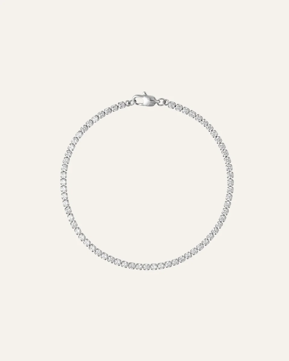 Njut av ett bländande armband i rostfritt stål prytt med glänsande zirkonstenar från ände till ände. Simma, träna eller bada utan att oroa dig för att smycket ska tappa färg. Armbandet har en PVD-beläggning som garanterar varaktig briljans.