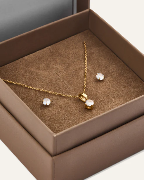 Ett stilrent set med halsband och matchande örhängen. Designade för att ge en minimalistisk look. Den perfekta presenten till någon du håller kär – eller till dig själv
