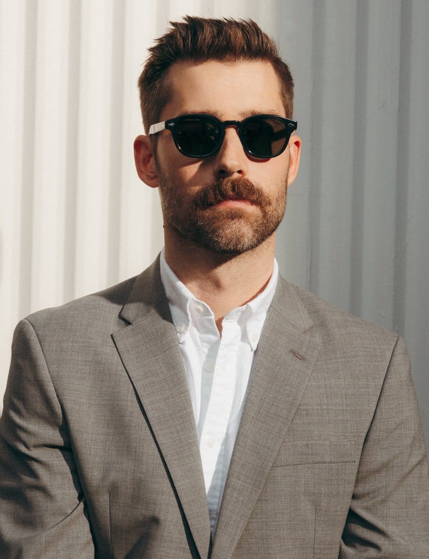 Bågarna är handgjorda i italienskt acetat och kombineras med tonade glas som ger både skydd och en snygg finish. Ett annat alternativ kan även vara Moscot Lemtosh som glasögon och sedan addera ett Clip-on.