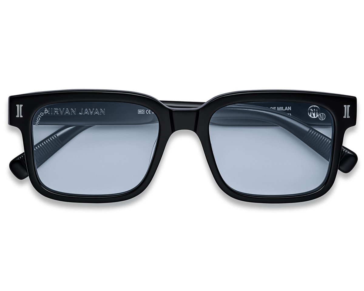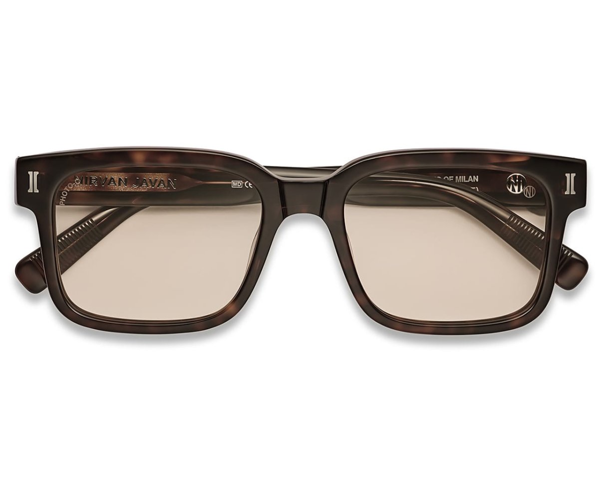 Nirvan Javan Milan 04 solglasögon i italiensk acetat. Rektangulär modell med gradaltonade eller fotokromatiska glas och 100 procent UV-skydd.