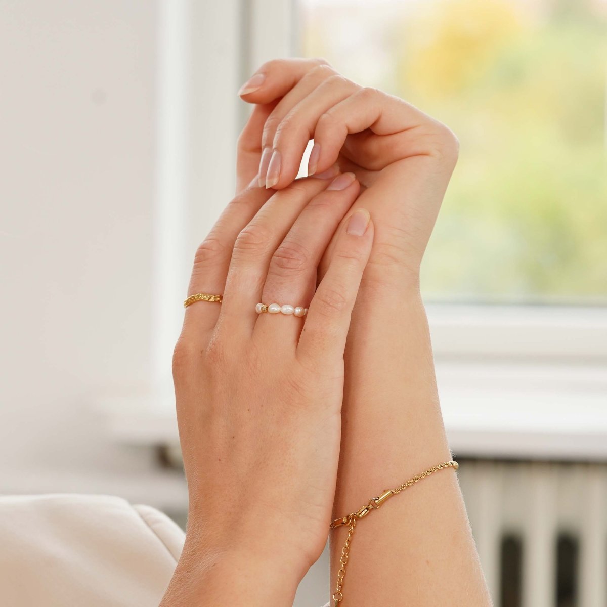 Vår enkel och klassisk Ocean pärlring. Ringen är elastisk och därför passar de flesta fingrar.