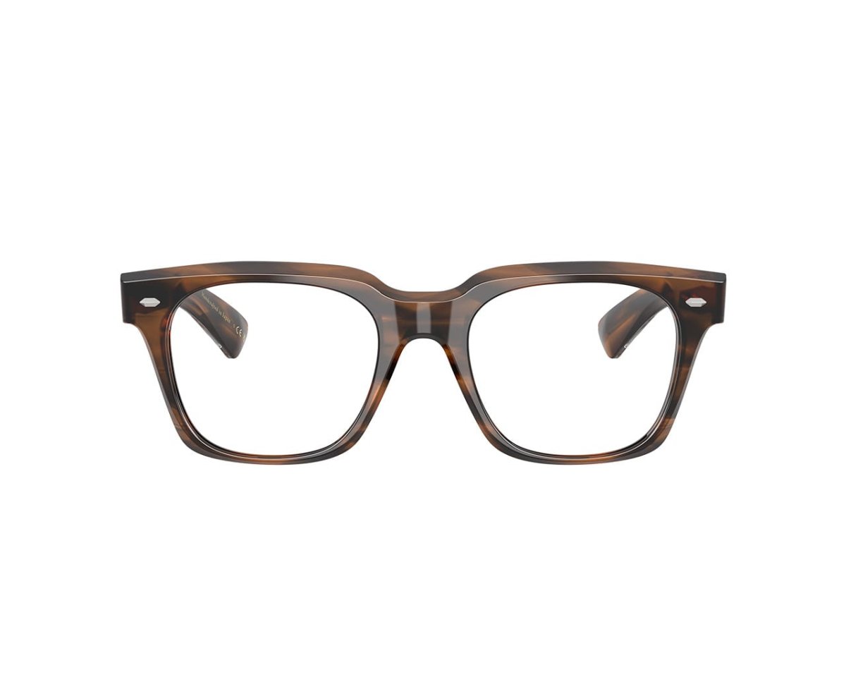 Oliver Peoples Alfrey är en markerad fyrkantig modell med tydlig närvaro och skarp siluett. Fronten har en stabil och genomarbetad form som ramar in ansiktet på ett självsäkert sätt utan att kännas tung. Det är en båge som ger ett distinkt uttryck men fortfarande behåller den där lugna, nedtonade känslan som kännetecknar Oliver Peoples.