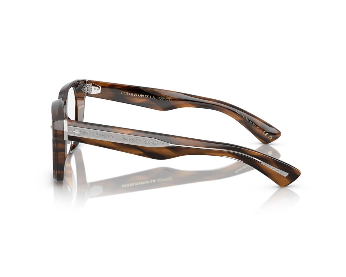 Oliver Peoples Alfrey är en markerad fyrkantig acetatbåge med vackra detaljer i skalmarna, perfekt för dig som vill ha tydlig form och genomarbetat hantverk i en tidlös design.