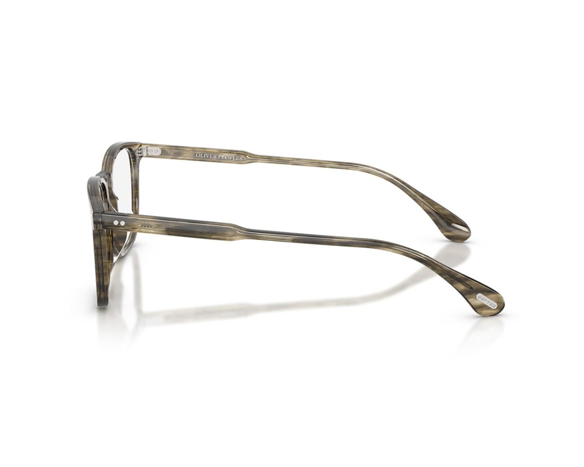 Oliver Peoples Tillen är en fyrkantig modell med tydlig front och mjukt rundade hörn som ger ett balanserat och klassiskt uttryck. Formen är markerad men inte hård, vilket gör att bågen känns trygg och självklar på ansiktet. Det är en siluett som aldrig går ur tiden.