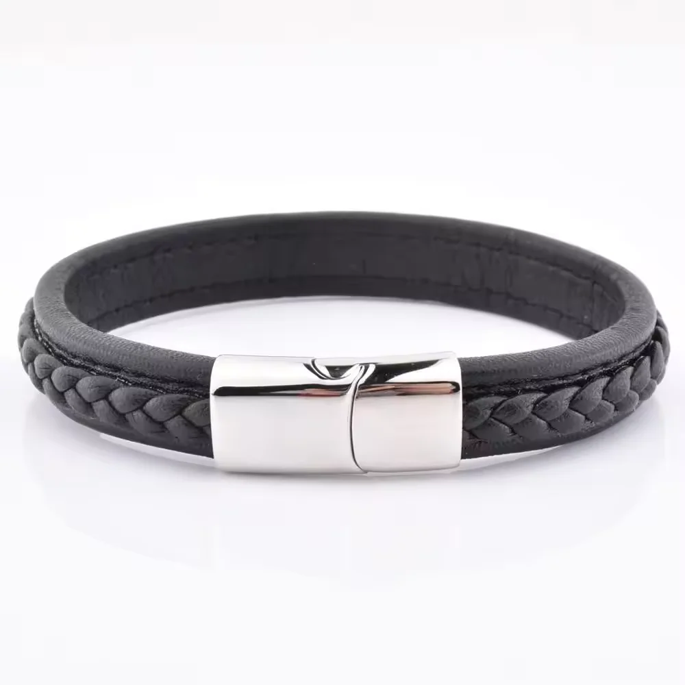 Ge din stil en sofistikerad touch med vårt herrarmband med enkel stängning. Tillverkat av högkvalitativt läder, erbjuder detta armband en perfekt balans mellan enkelhet och elegans.