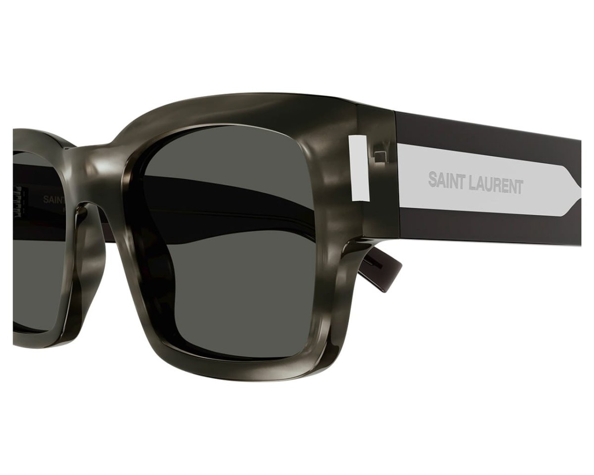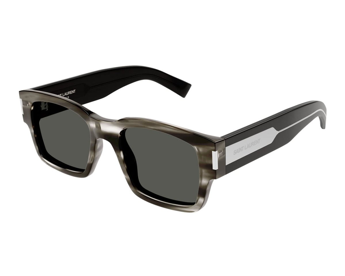 Saint Laurent SL617 är ett par unisexsolglasögon med markerad fyrkantig acetatbåge för ett djärvt och sofistikerat uttryck.