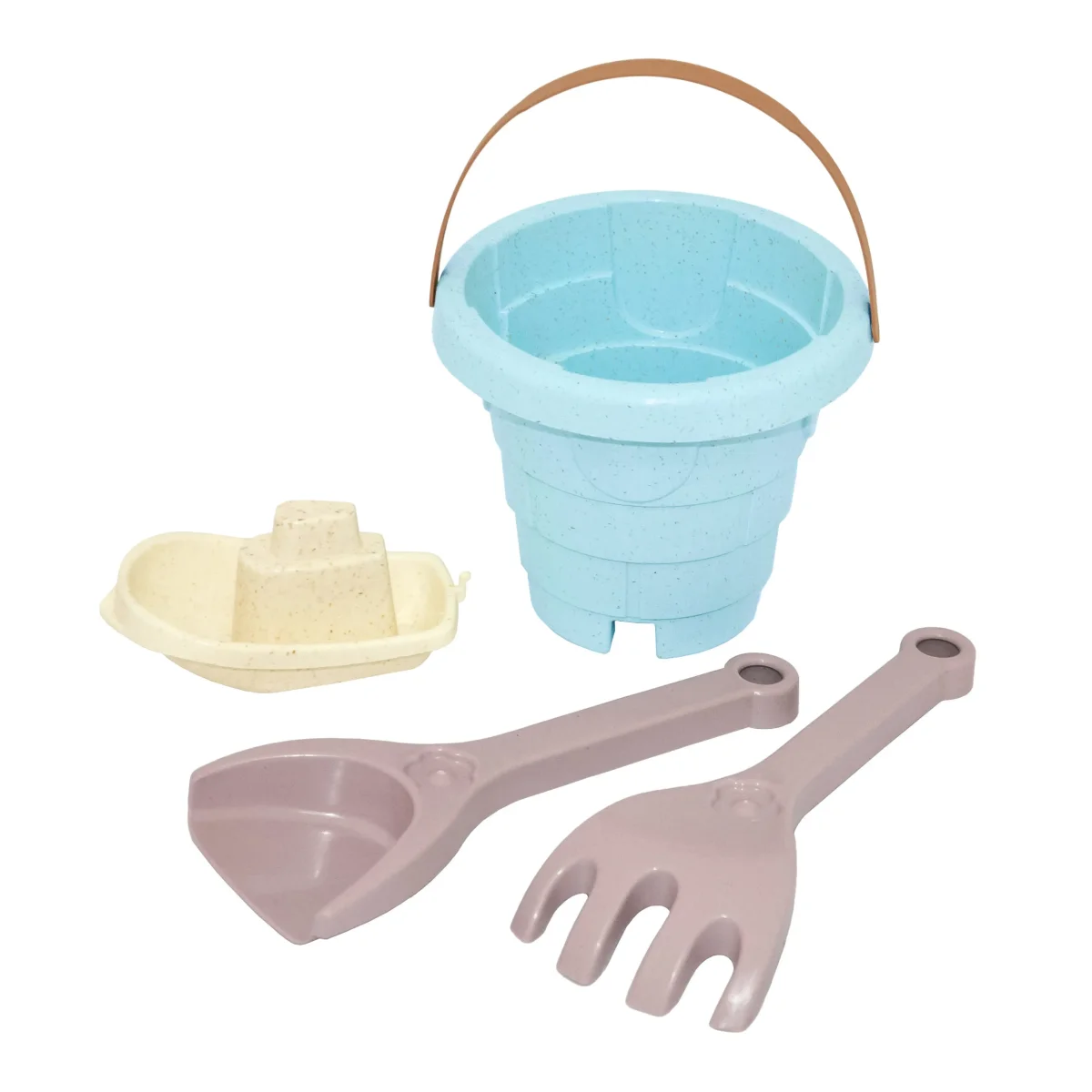 Fint set till sandlådan. 1 x hink, 1 x spade, 1 x båt, 1 x kratta.