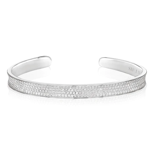 Bangle av 925 Sterling Silver med rhodium, polerad yta och handplacerade facettslipade vita zirkoner.