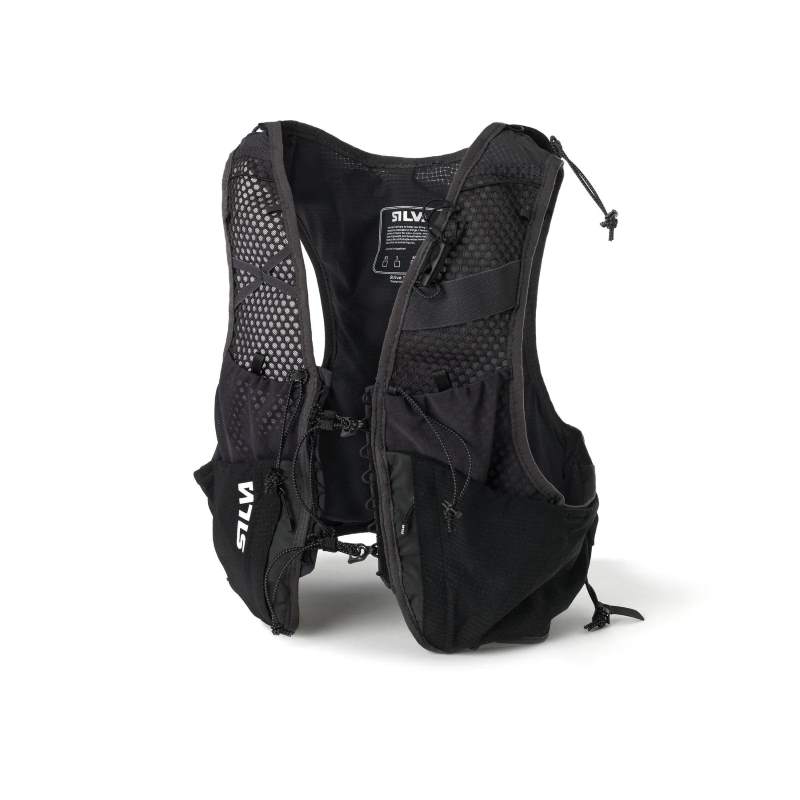 Västen har två mjuka kolvfickor med justerbara remmar och ett fack för en vätskeblåsa med tubutlopp på axlarna. Den har tre dragkedjefickor, en bak och två fram, en av dem med nyckelkrok. De stora framfickorna gör det lätt att komma åt geler, barer eller handskar. Fäst din pannlampa på framsidan, förvara batteriet i en elastisk ficka baktill, använd kabeluttaget på axlarna. Löparvästen har även reflexdetaljer, en nödsignal och remmar för löpstavar.