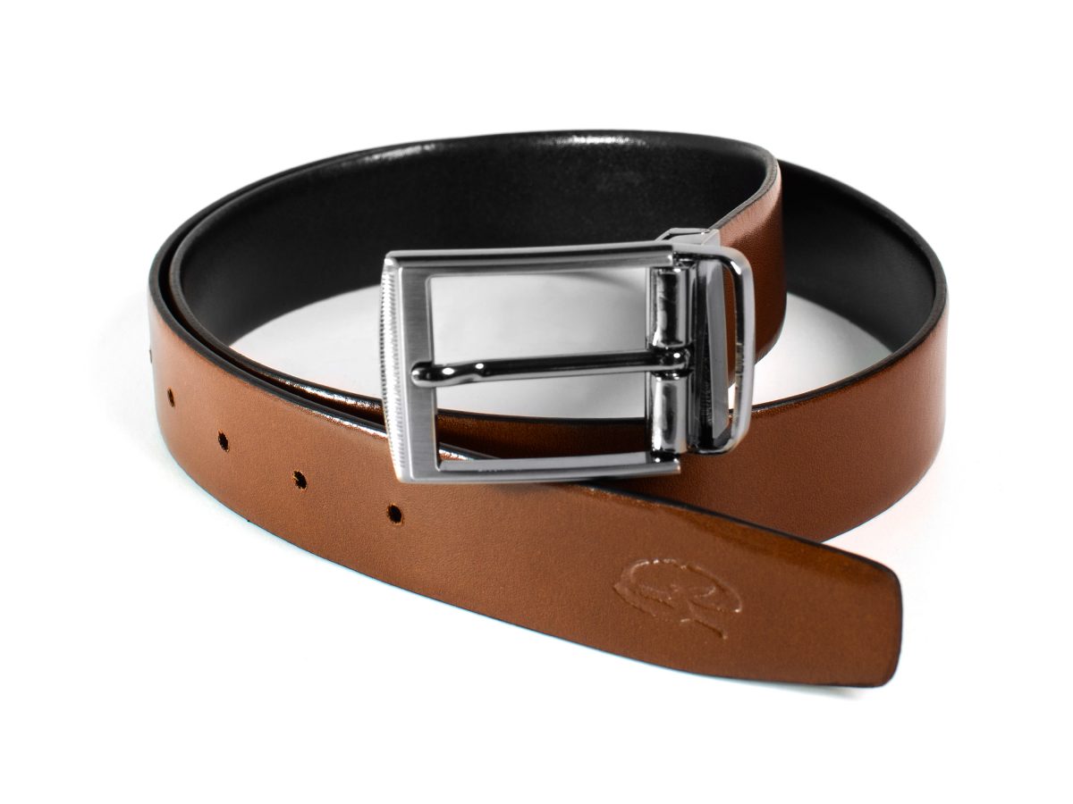 Tänk om det fanns ett riktigt snyggt skärp i läder som var brunt på ena sidan och svart på andra sidan, och genom ett smart spänne som man enkelt kan vrida runt för att välja om man vill ha ett brunt skärp eller ett svart skärp. Det finns det och här är det.