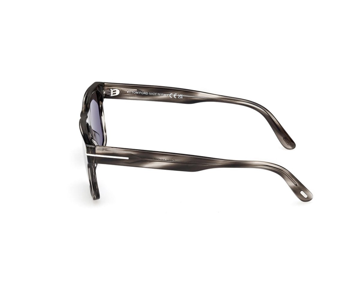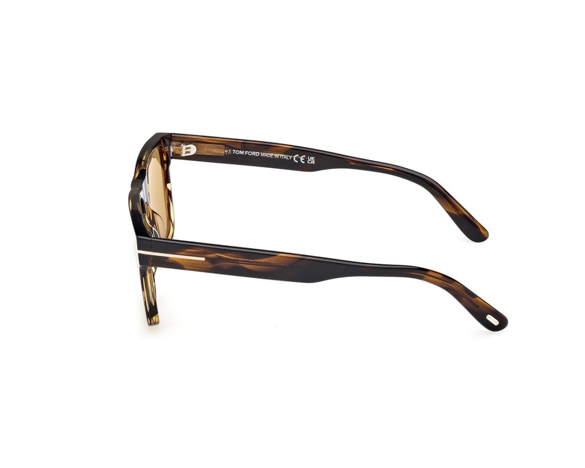 Tom Ford FT1205 solglasögon har en klassisk fyrkantig design med rena linjer och en exklusiv känsla. Den eleganta acetatbågen kombineras med Tom Fords ikoniska ’T’-logotyp på skalmarna, vilket ger modellen en sofistikerad touch.