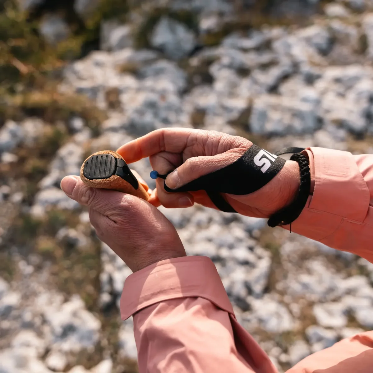 De medföljande handremmarna kan enkelt bytas ut mot ventilerande Blueberry-handskar i två storlekar (säljs separat). För ännu mer mångsidighet skyddar gummifötter spetsarna på hårt underlag och stora trugor ger bättre stöd i snö eller mjuk terräng.