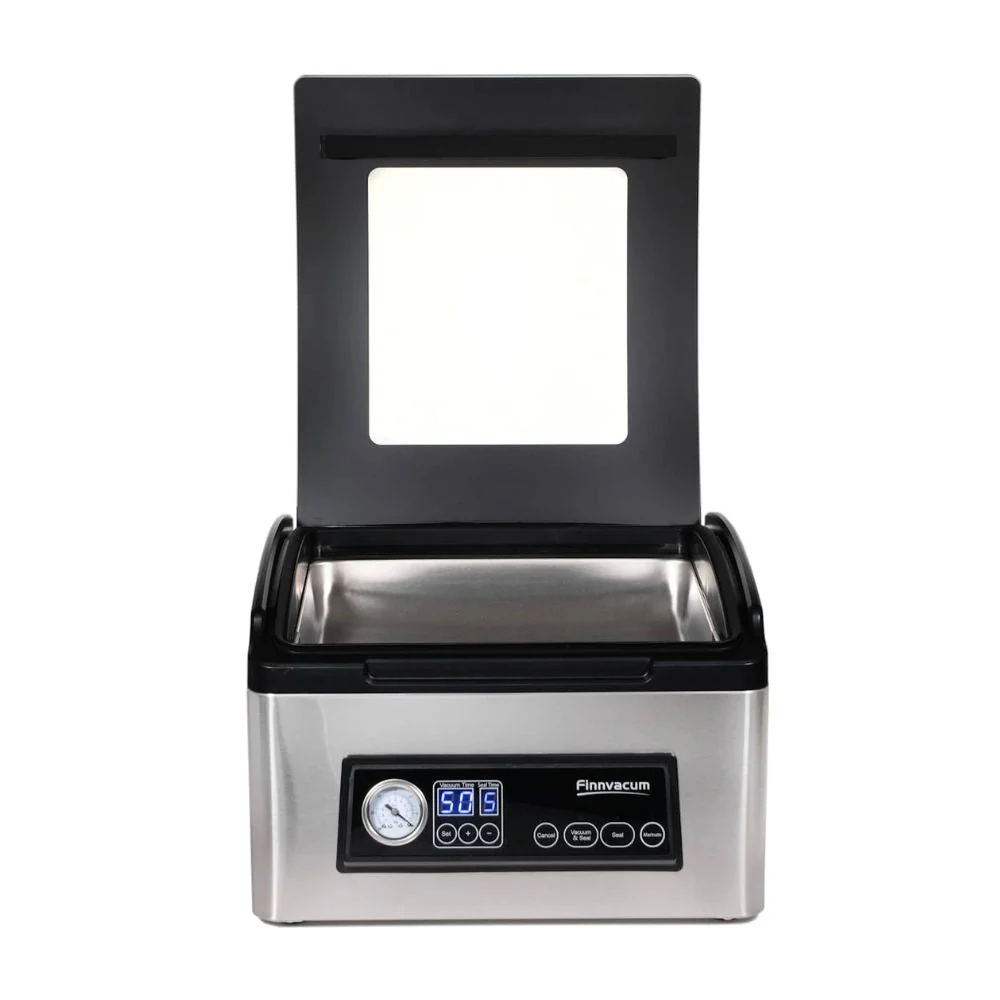 Upplev den enastående prestandan hos en kammarvakuummaskin som garanterat kommer att överträffa dina förväntningar! Denna maskin är utrustad med avancerad teknologi för att leverera optimala resultat. Den kraftfulla motorn suger snabbt och effektivt ut luften och skapar ett perfekt vakuum med tyst drift. Med en robust fyrdubbel kolvpump är den en prisvärd och kraftfull lösning som är kompatibel med släta vakuumpåsar. Perfekt för hemmabruk, jaktlaget och gårdsbutiker. Till skillnad från traditionella vakuummaskiner används släta påsar i en kammarvakuummaskin.