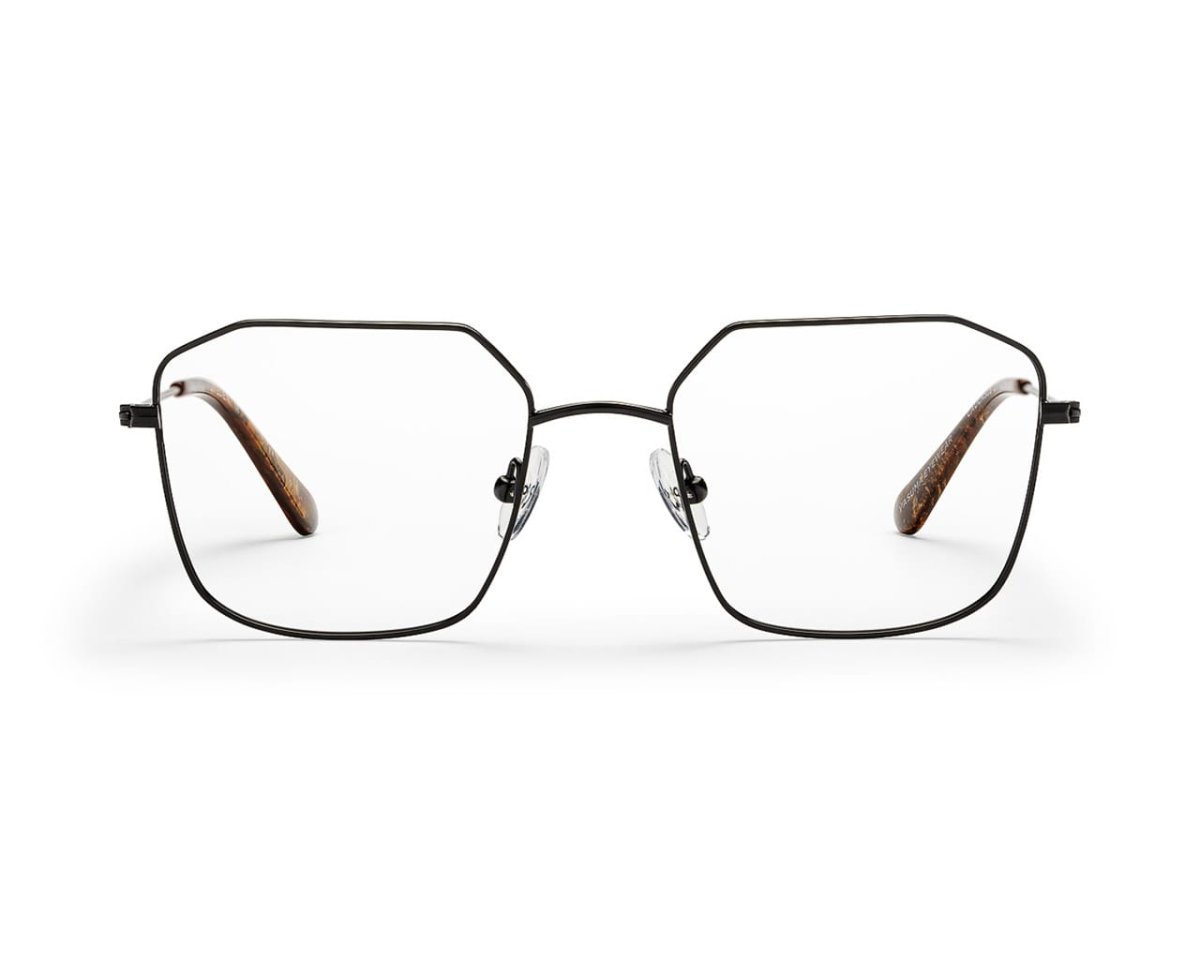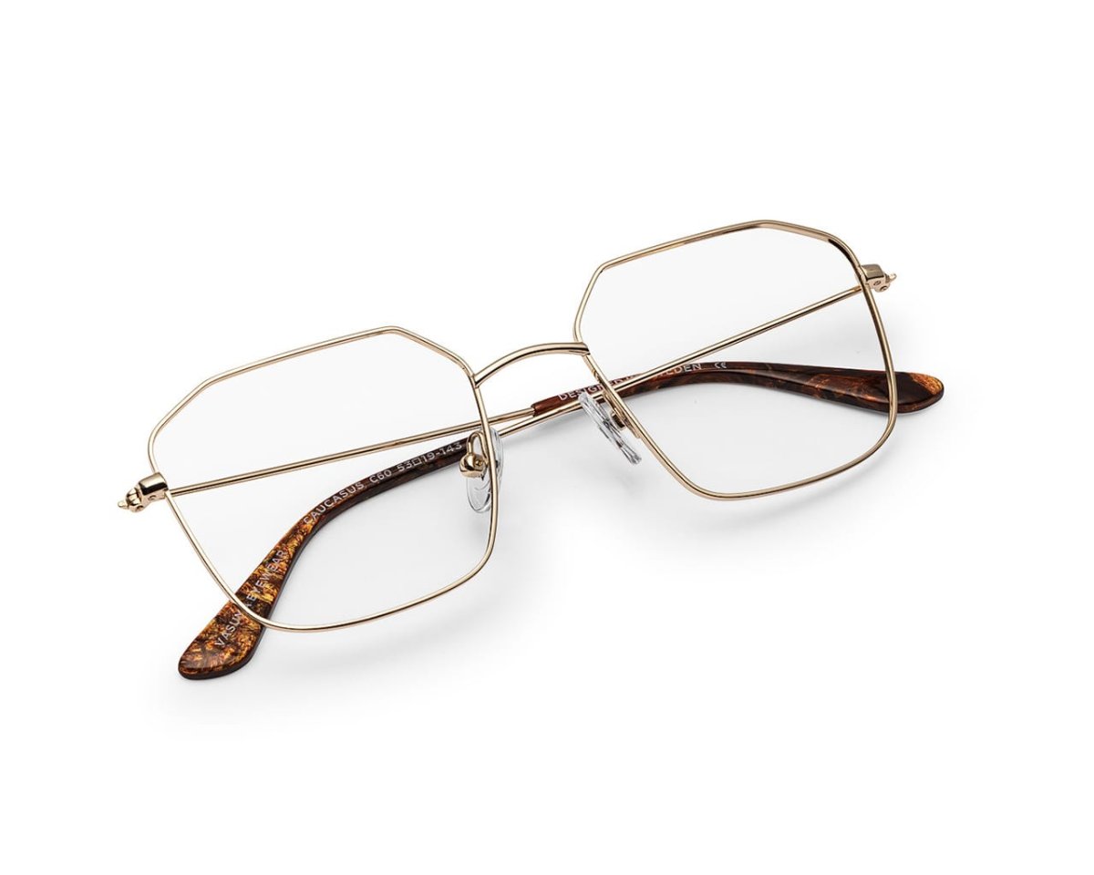 Classic lightweight stainless steel eyewear. Smooth nose-bridge and acetate temple tips. High quality spring hinges for comfort and longevity. All Vasuma metal frames our made of 80% recycled metal. Oversized oval shape with amber colored acetate temple tips.